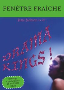 « Sourcils froncés, yeux qui brillent, les larmes rendues brûlantes par les projecteurs; il semblerait bien qu’ici, boys do cry. Dans Drama Kings, Stevie déploie ses références colorées et sensibles. Des dessins et des peintures de garçons qui pleurent, réalisés respectivement au crayon de couleur et à l’huile, habitent la Fenêtre Fraîche pour un temps, déversant leur coeurs sur la place publique. Lors du vernissage, une performance dragifiée où ce sont les références musicales qui prendront vie, dans un corpus de textes traduit et personnifié par Jesse Jackson. Dans la continuité de ses recherches autour des fictions hollywoodiennes, du camp et des coeurs brisés, Stevie offre une ode à ses icônes, garçons amoureux, hommes dont la carapace se brise, genderfuckers au mascara qui coule. La tendresse de se laisser aller, d’aimer fort et vite, encore un peu, avant que les spotlights ne s’éteignent. »