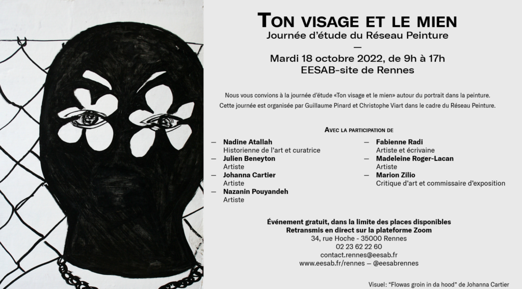 Cette journée d’études est organisée par Guillaume Pinard et Christophe Viart, artistes, dans le cadre des activités du Réseau Peinture, réseau d’écoles d’art et de design publiques qui rassemblent différentes écoles autour de la pratique de la peinture dans l’art.